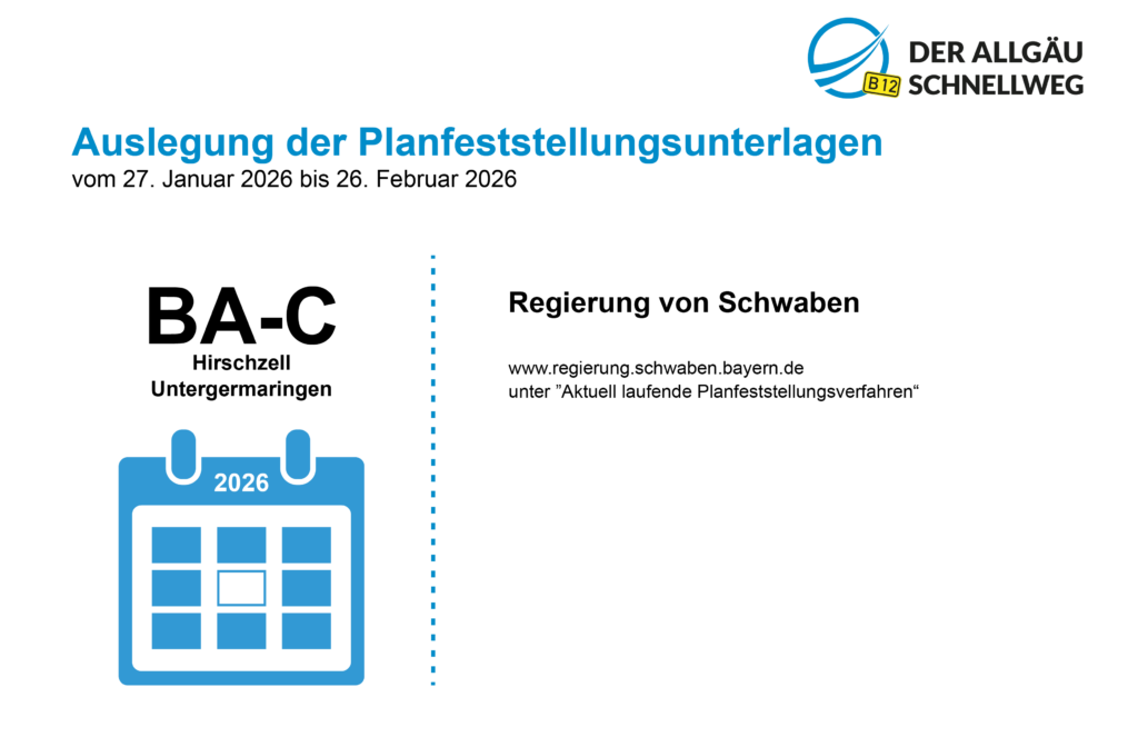 Das Staatliche Bauamt Kempten informiert in der Stadt Kaufbeuren und den Gemeinden Germaringen und Mauerstetten über den Ablauf des Planfeststellungsverfahrens.